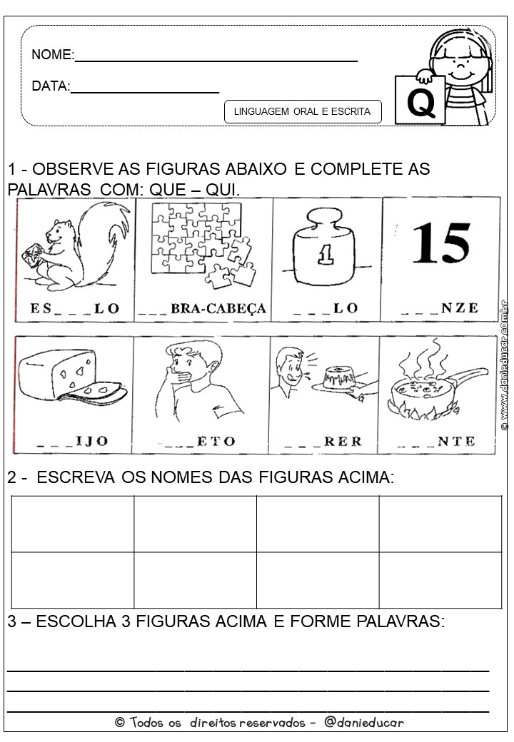 Portanto o objetivo destas atividades de alfabetização – letra Q são importantes para a criança reconhecer a ordem alfabética e o processo do sistema de escrita alfabética.