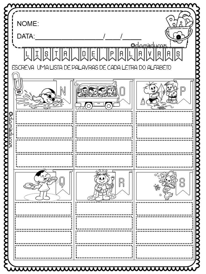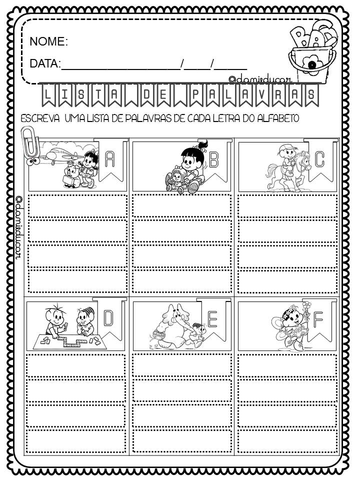 Atividades de alfabetização – lista de palavras